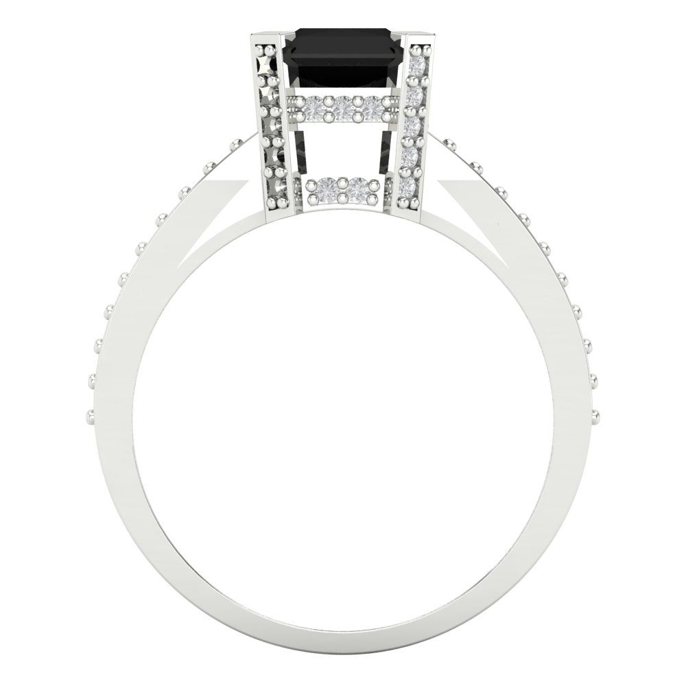 2.35 cttw Natural Onyx Solitaire with Zirconia Simulated Diamond Accents Engagement Ring - Solid Gold (Emerald Cut,8x6mm)