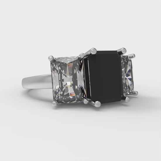 4 cttw Natural Onyx Three-Stone Engagement Ring - Solid Gold (Emerald Cut,8x6mm)