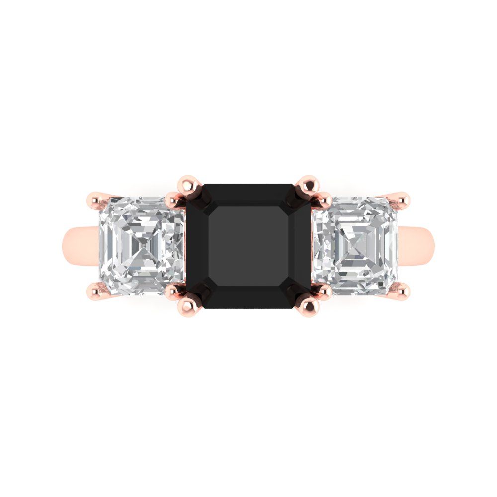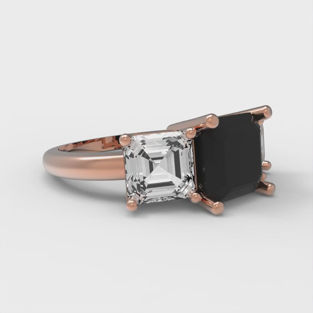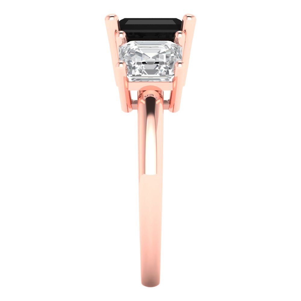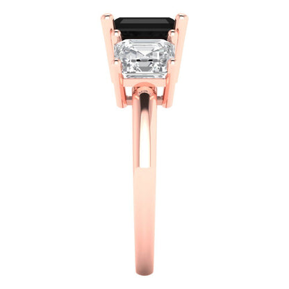 4 cttw Natural Onyx Three-Stone Engagement Ring - Solid Gold (Square Emerald Cut,7.0X7.0mm)