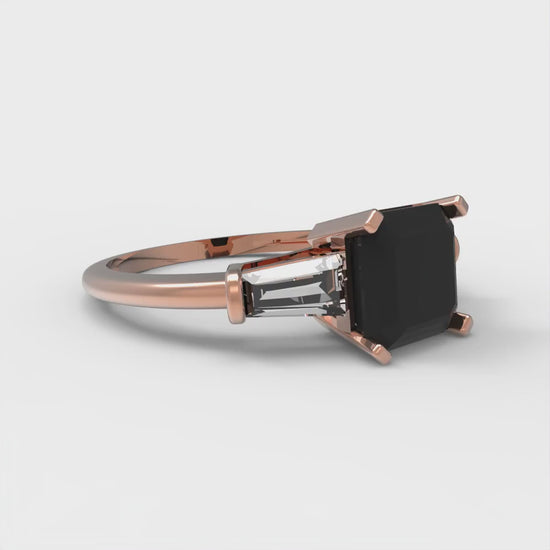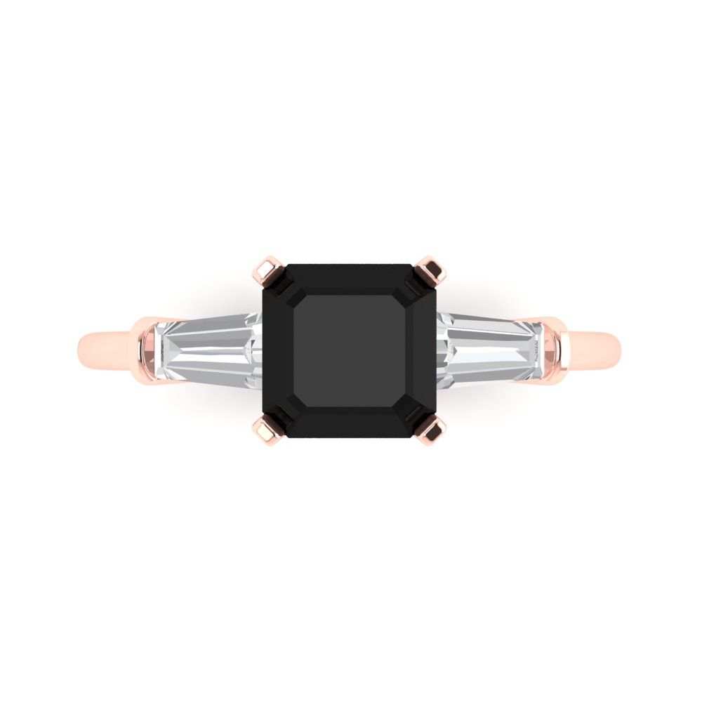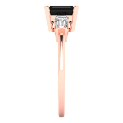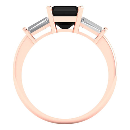 1.62 cttw Natural Onyx Three-Stone Engagement Ring - Solid Gold (Square Emerald Cut,6.5X6.5mm)