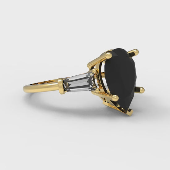 2.5 cttw Natural Onyx Three-Stone Engagement Ring - Solid Gold (Pear Cut,10x7mm)