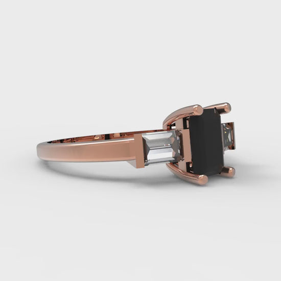 0.8 cttw Natural Onyx Three-Stone Engagement Ring - Solid Gold (Emerald Cut,6x4mm)