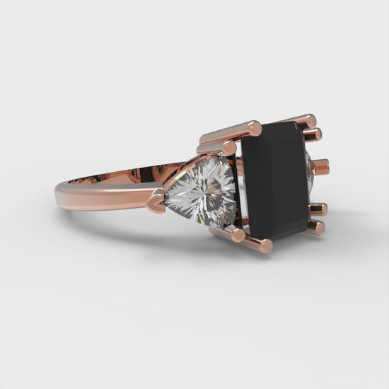 2.82 cttw Natural Onyx Three-Stone Engagement Ring - Solid Gold (Emerald Cut,8x6mm)