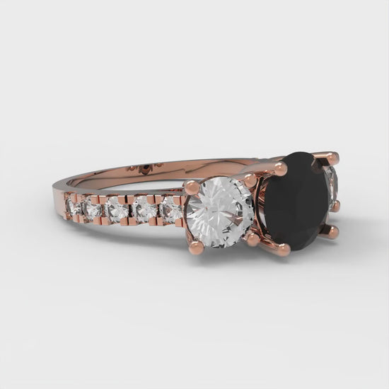 1.97 cttw Natural Onyx Three-Stone Engagement Ring - Solid Gold (Round Cut,6.5mm)