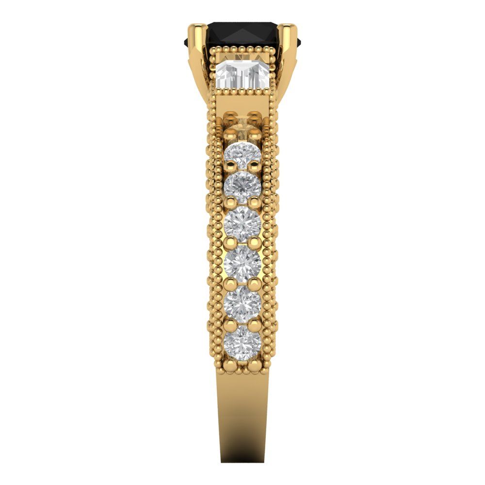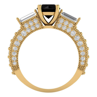 2.33 cttw Natural Onyx Three-Stone Engagement Ring - Solid Gold (Round Cut,6.5mm)