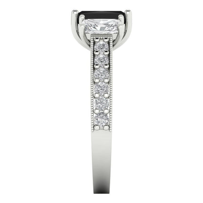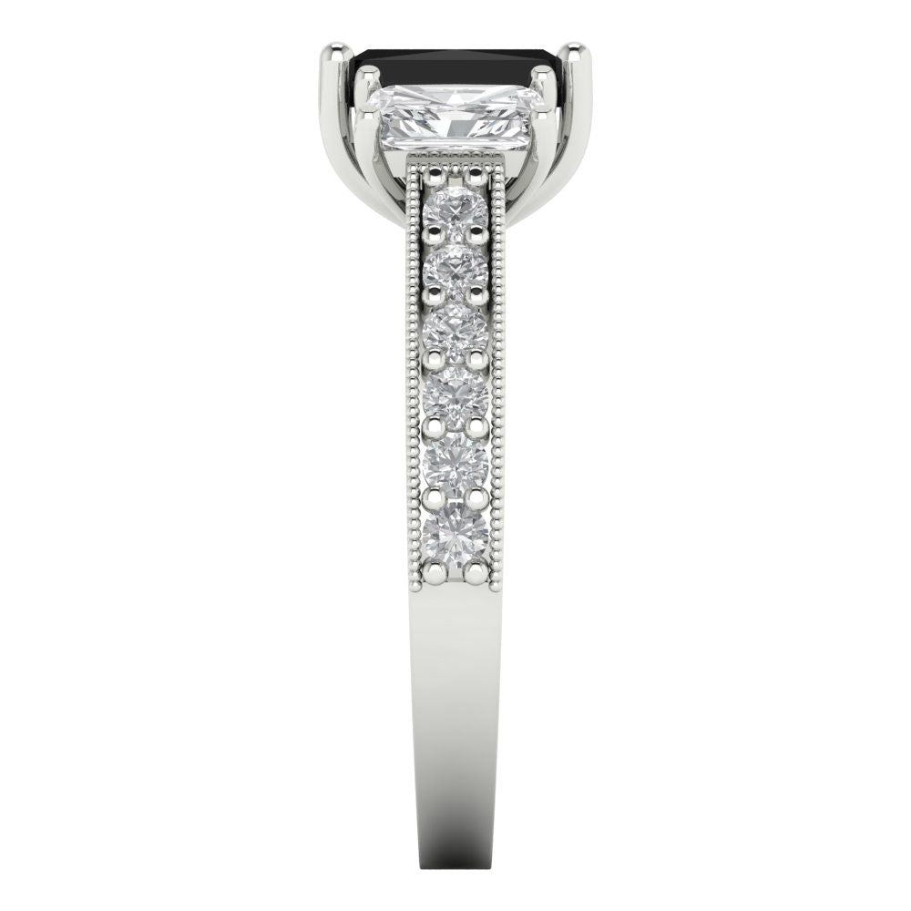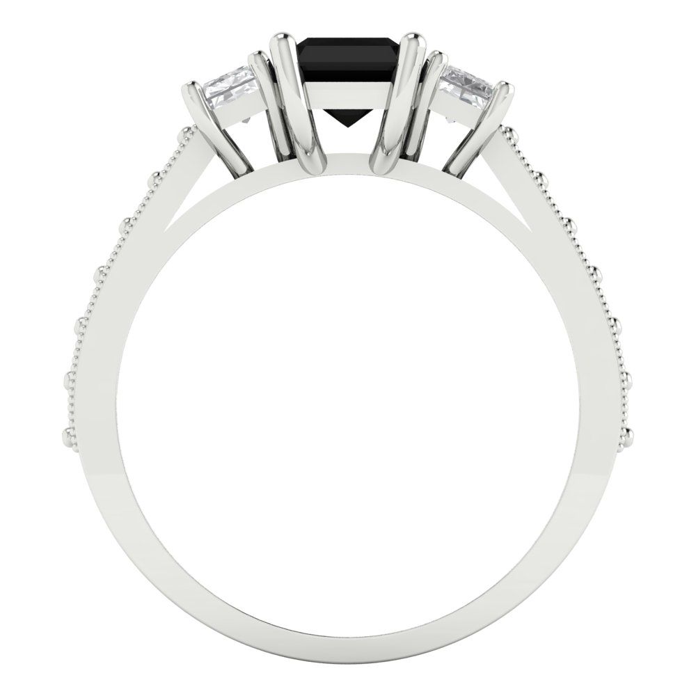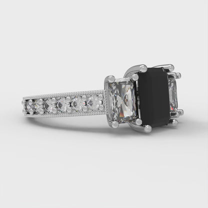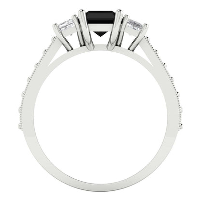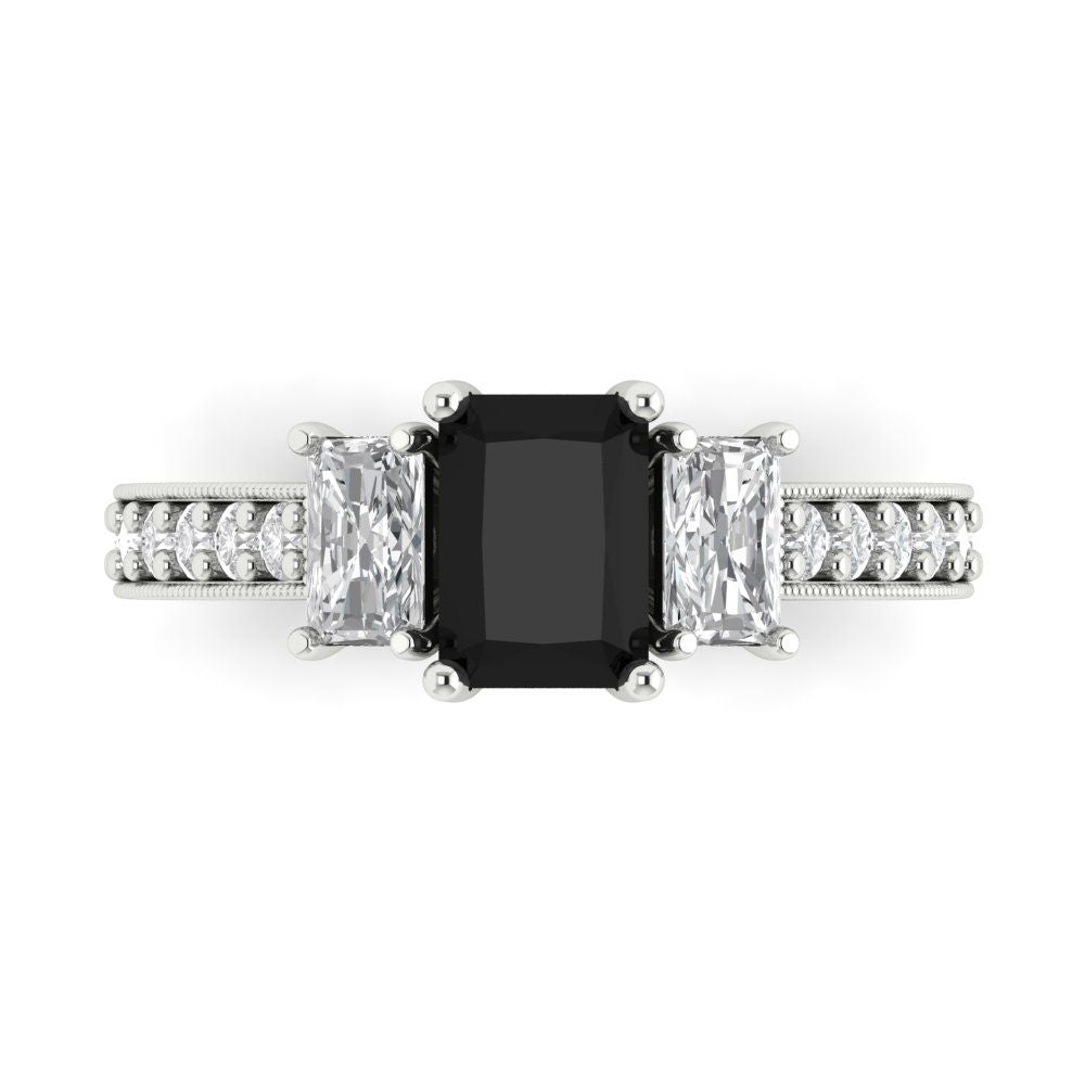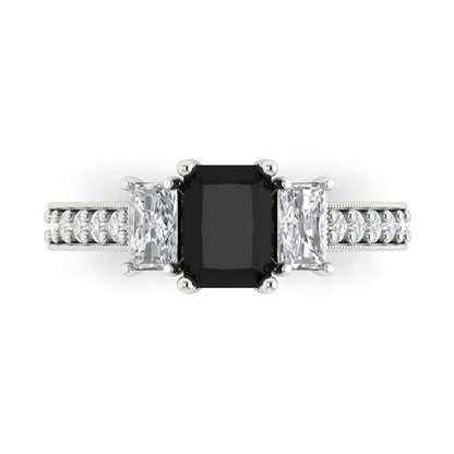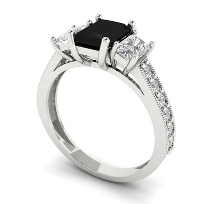 1.88 cttw Natural Onyx Three-Stone Engagement Ring - Solid Gold (Emerald Cut,7x5mm)