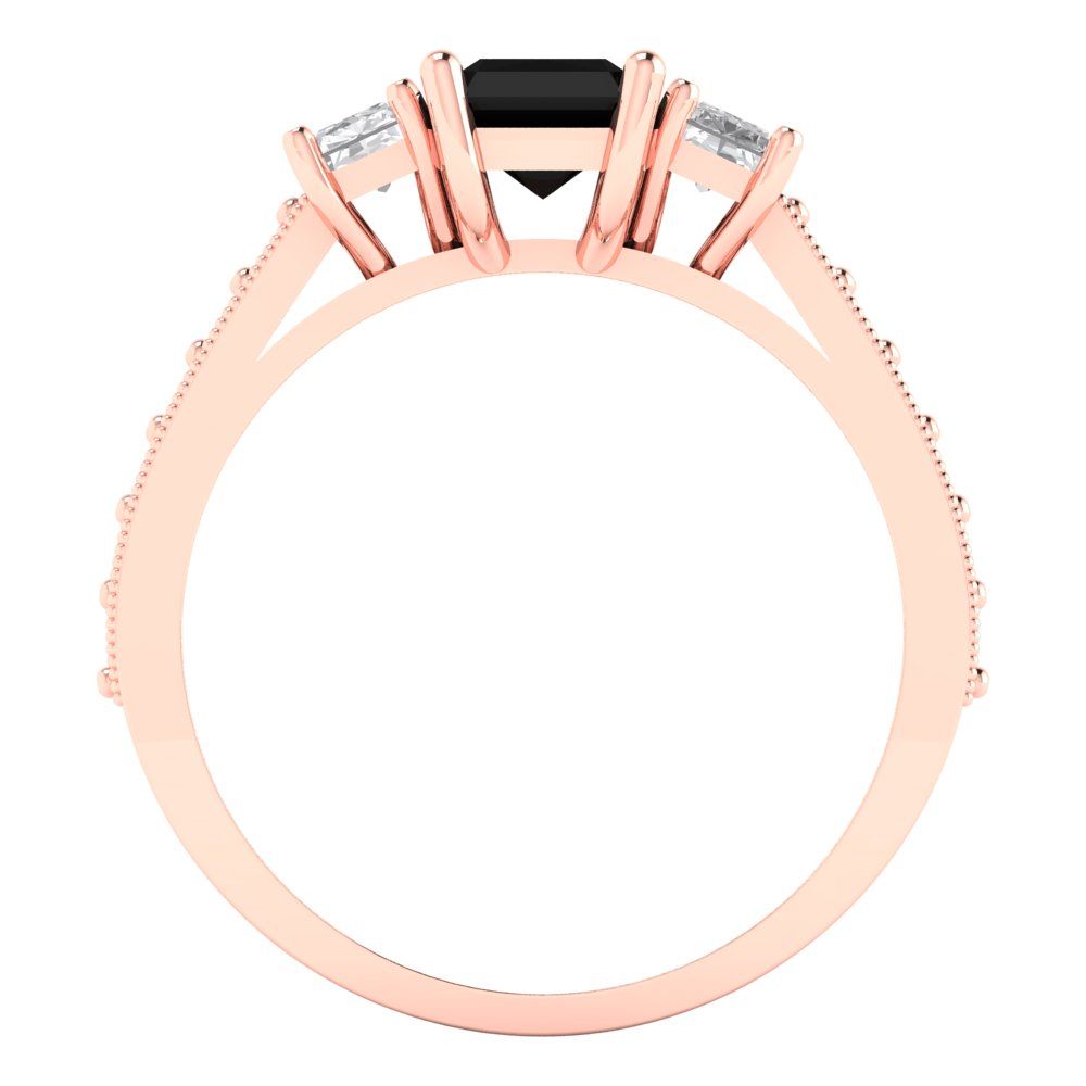 1.88 cttw Natural Onyx Three-Stone Engagement Ring - Solid Gold (Emerald Cut,7x5mm)