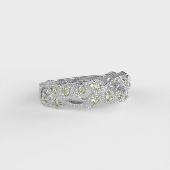 0.17 cttw Natural Peridot Round Cut White Gold Eternity Wedding Band
