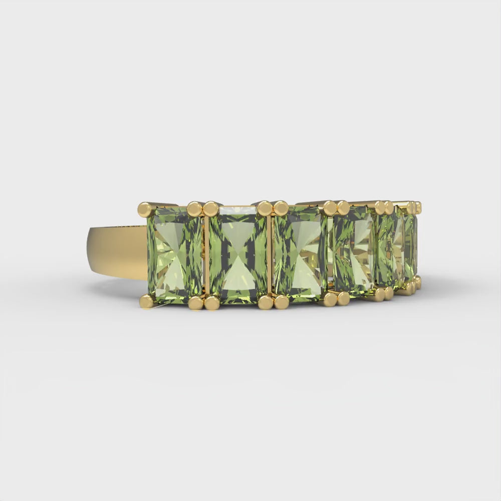 2.61 cttw Natural Peridot Emerald Cut Yellow Gold Eternity Wedding Band