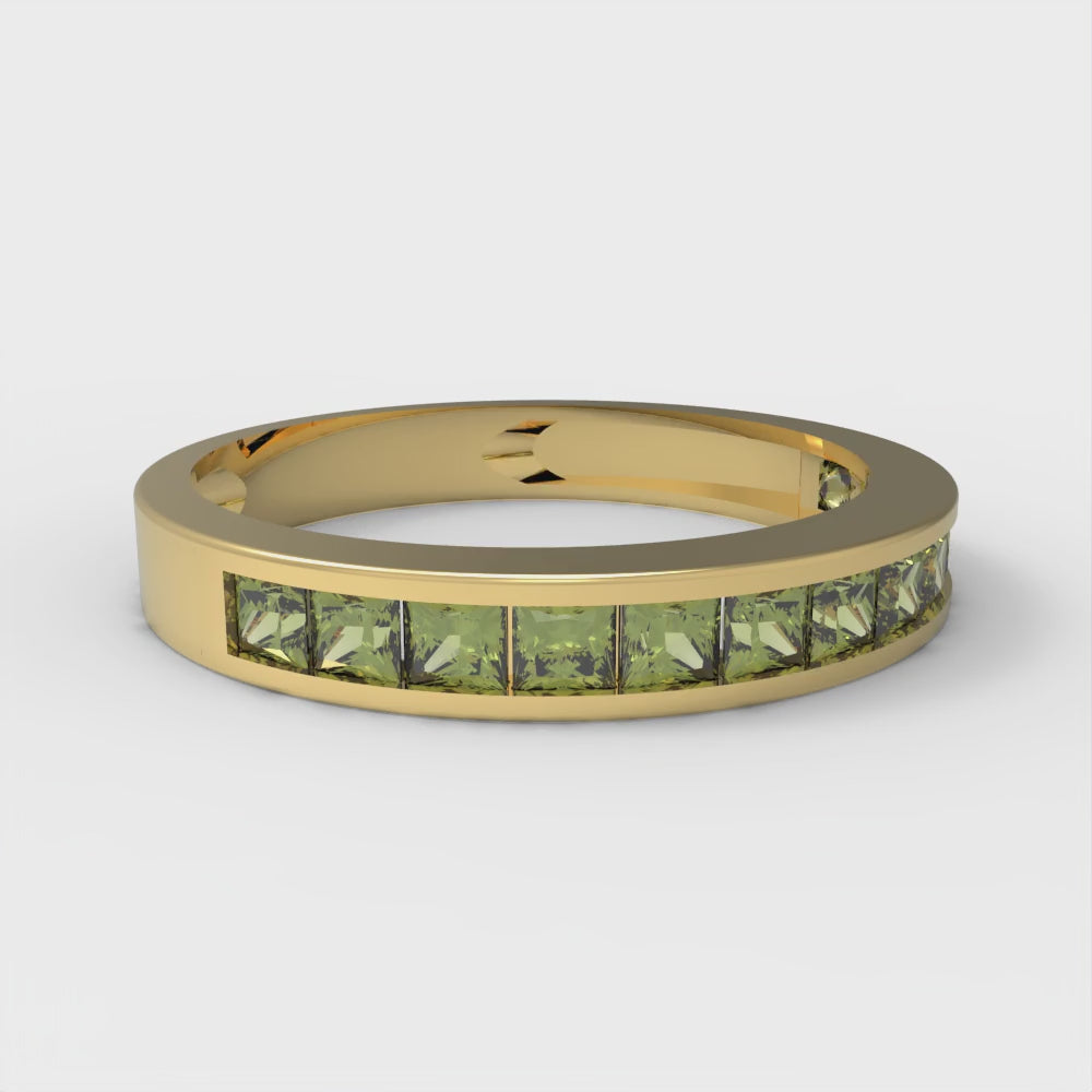 0.78 cttw Natural Peridot Princess Cut Yellow Gold Eternity Wedding Band