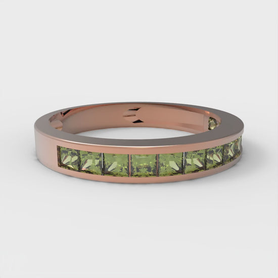 0.78 cttw Natural Peridot Princess Cut Rose Gold Eternity Wedding Band