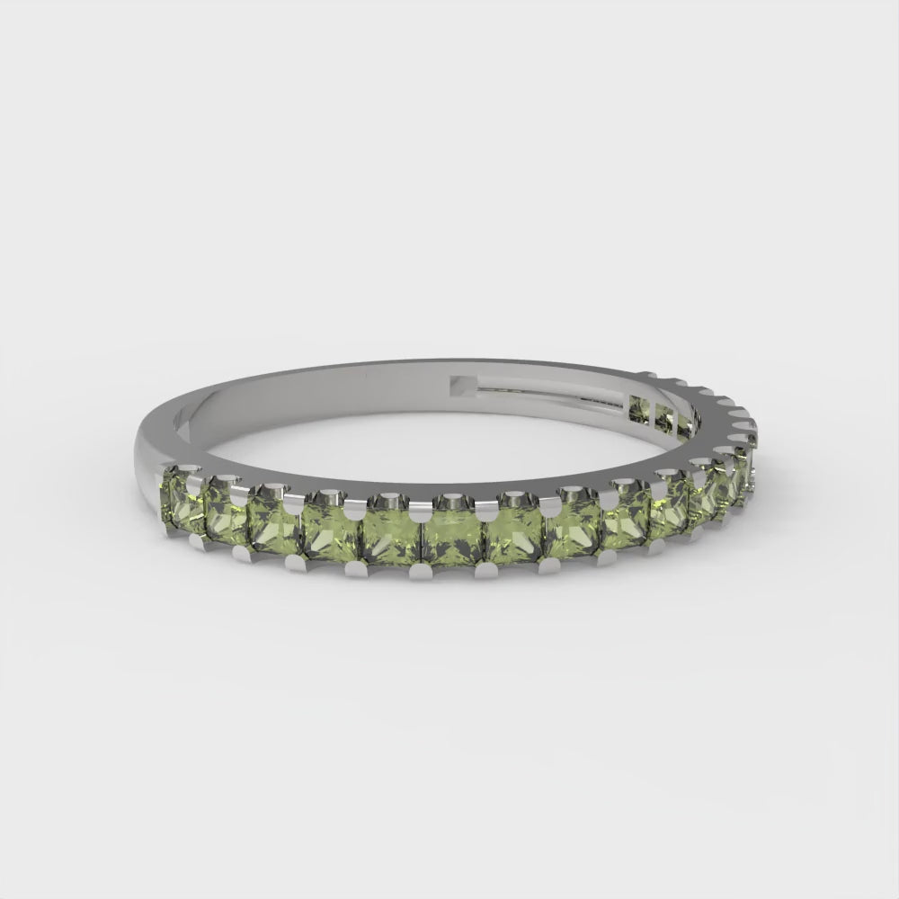0.285 cttw Natural Peridot Princess Cut White Gold Eternity Wedding Band