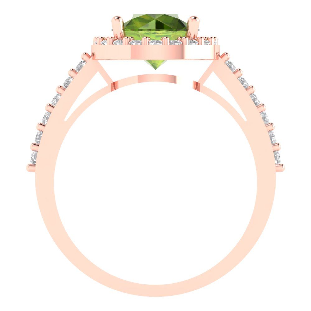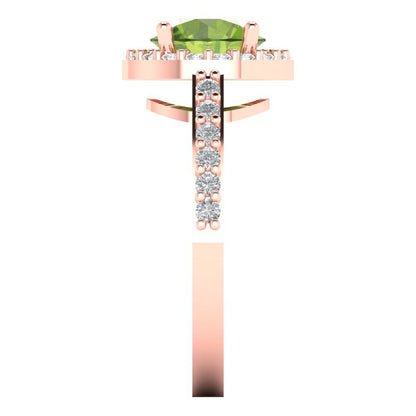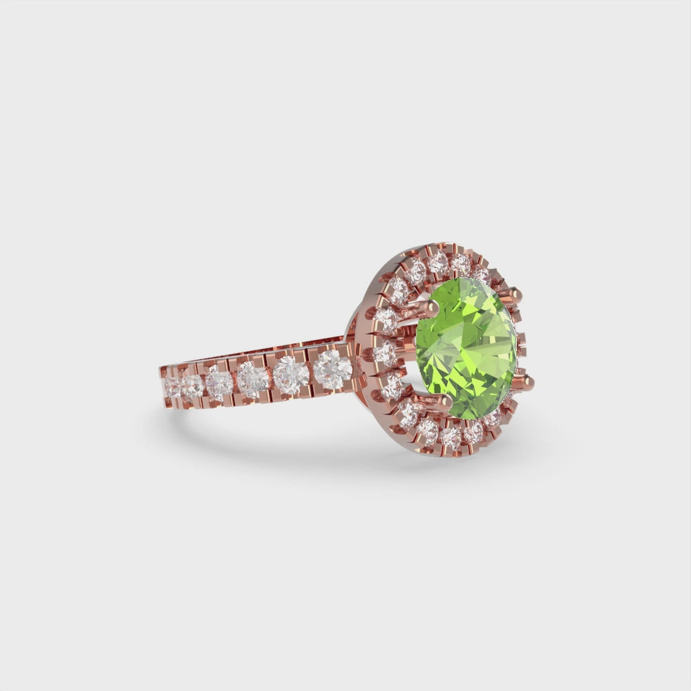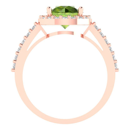 1.86 cttw Natural Peridot Hidden Halo Engagement Ring - Solid Gold (Round Cut,7.5mm)