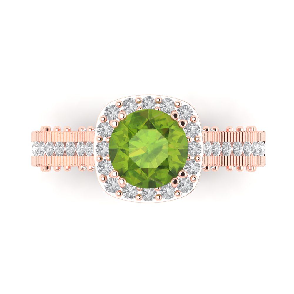 2.37 cttw Natural Peridot Hidden Halo Engagement Ring - Solid Gold (Round Cut,7.5mm)