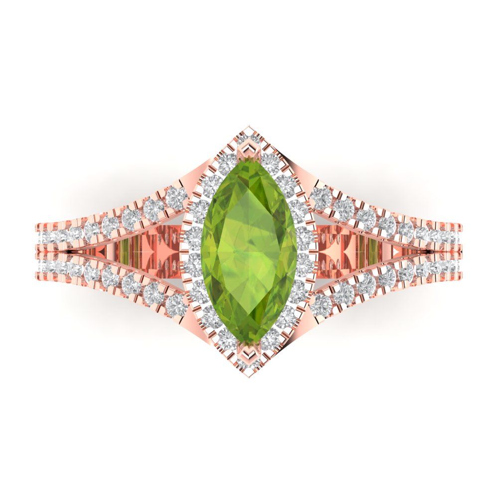 1.2 cttw Natural Peridot Hidden Halo Engagement Ring - Solid Gold (Marquise Cut,9x4.5mm)