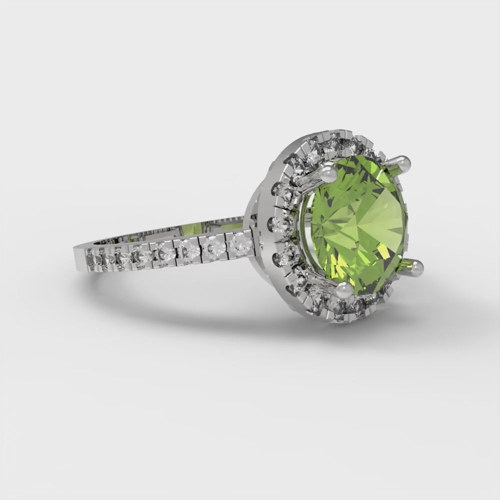 1.8 cttw Natural Peridot Hidden Halo Engagement Ring - Solid Gold (Round Cut,7.5mm)
