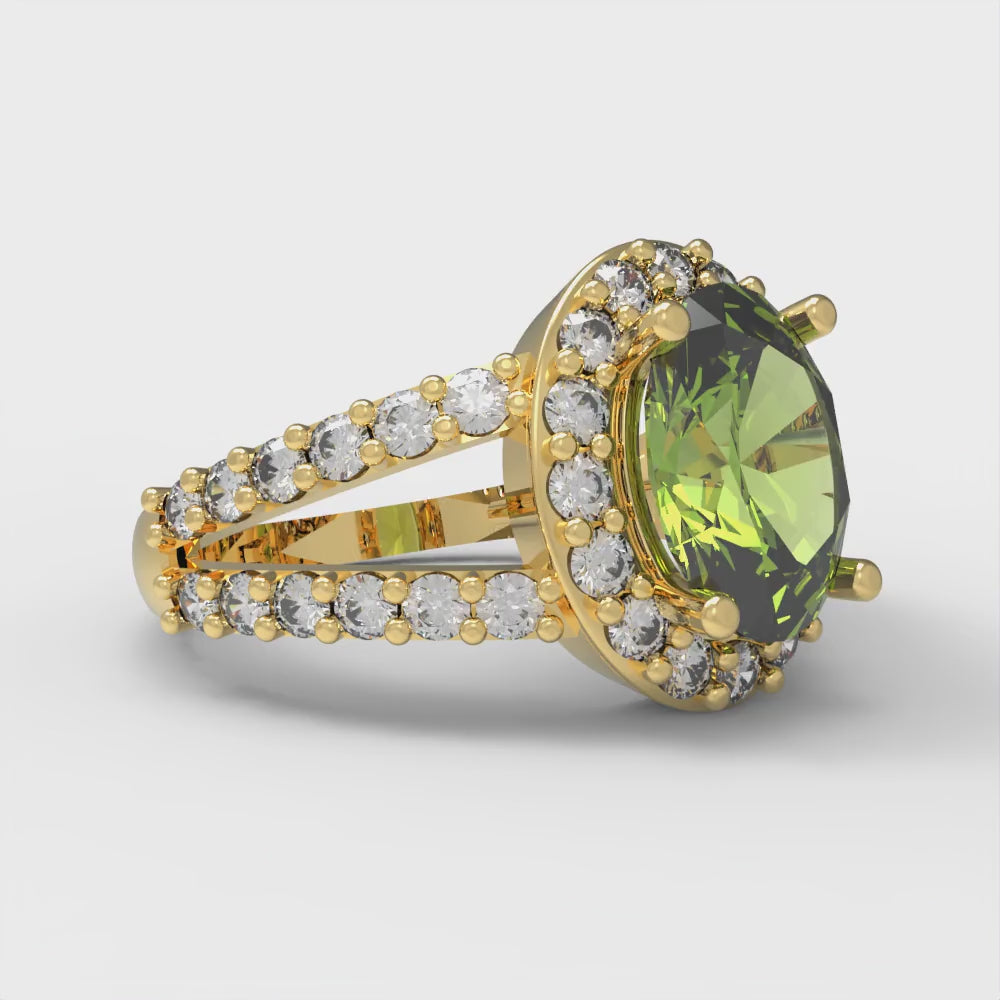 2.6 cttw Natural Peridot Hidden Halo Engagement Ring - Solid Gold (Oval Cut,9x7mm)