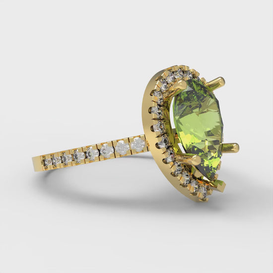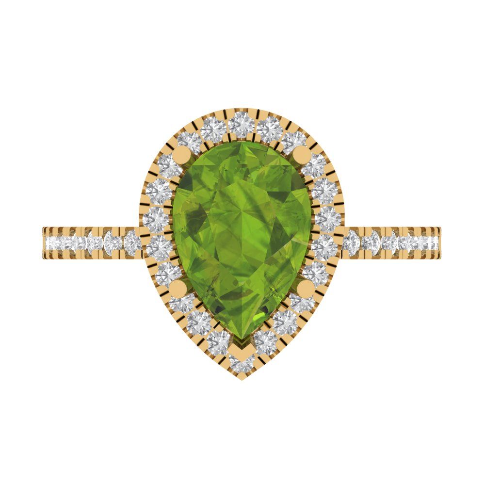 2.38 cttw Natural Peridot Hidden Halo Engagement Ring - Solid Gold (Pear Cut,10x7mm )