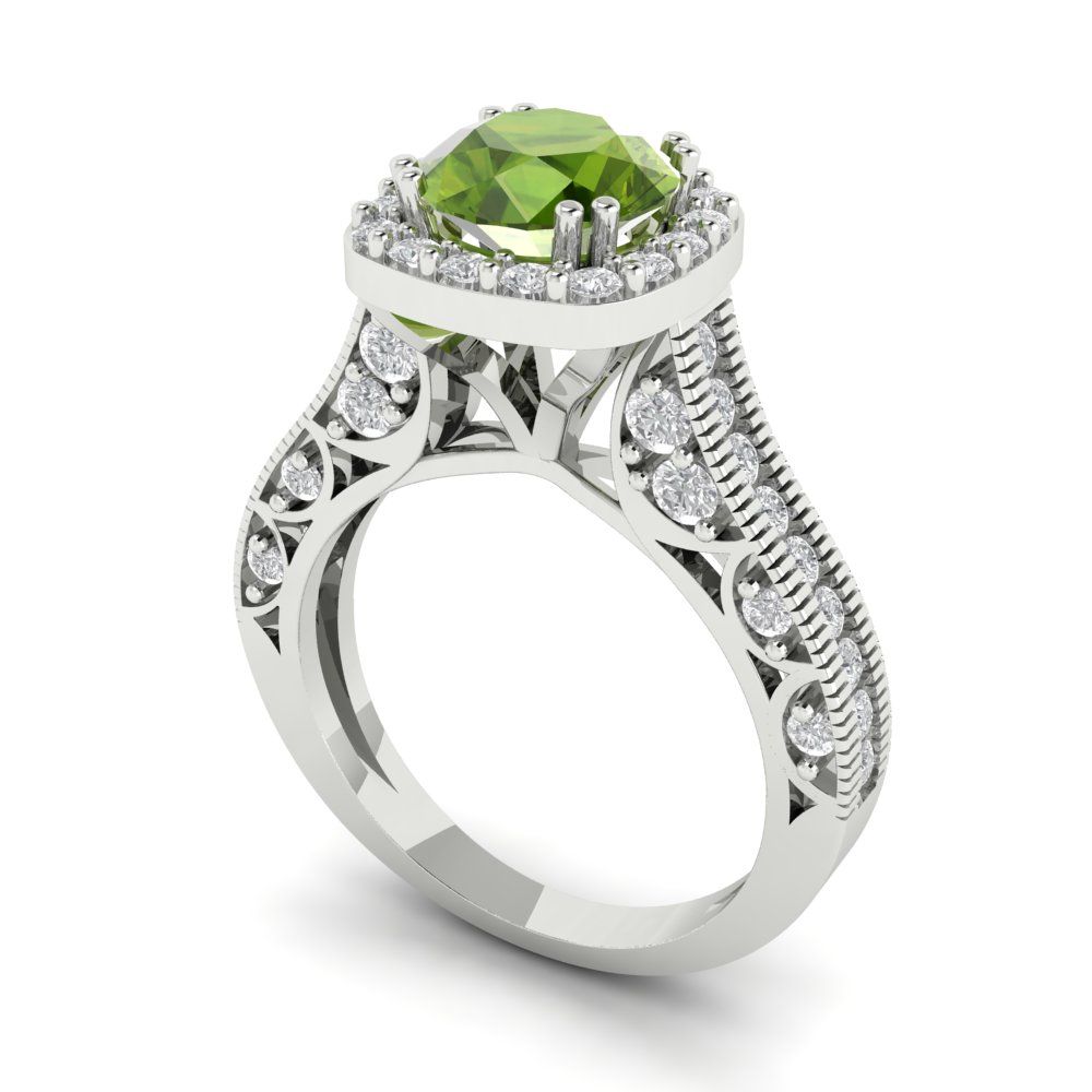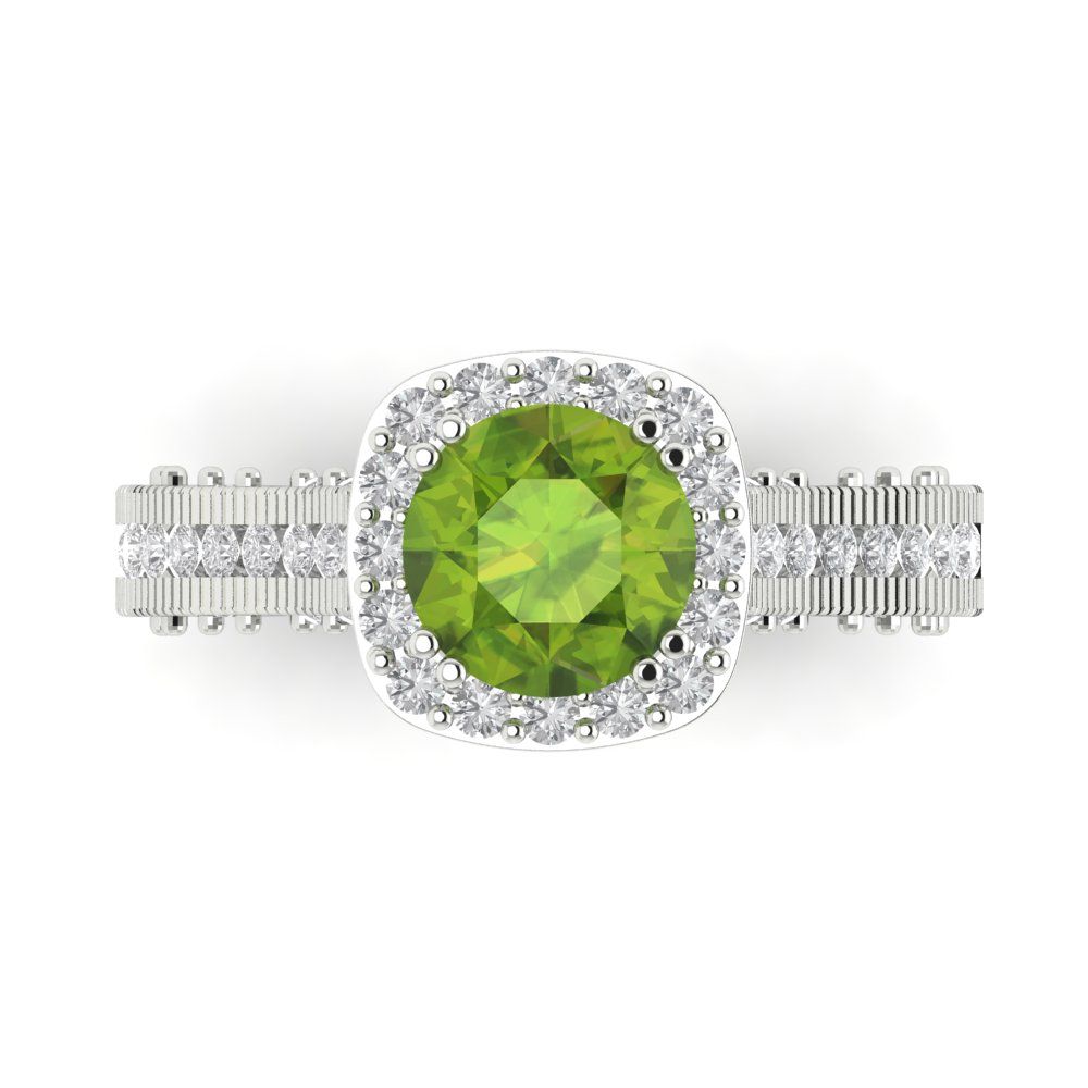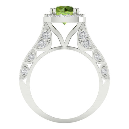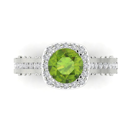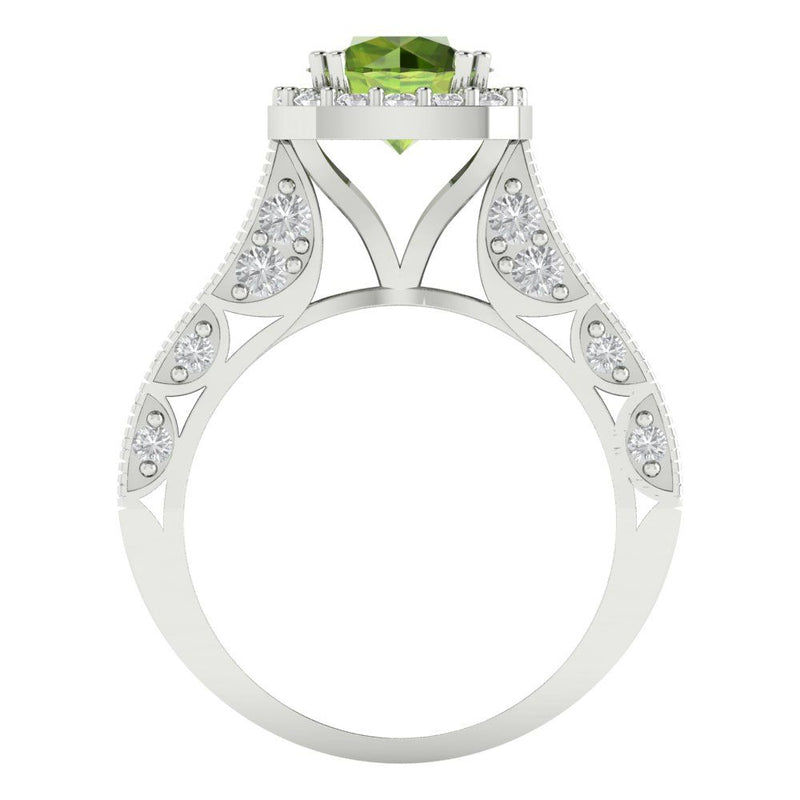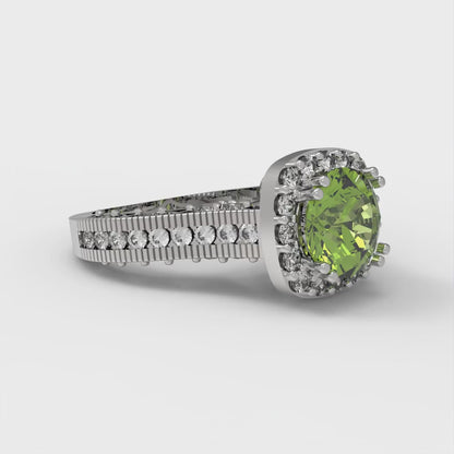 2.37 cttw Natural Peridot Hidden Halo Engagement Ring - Solid Gold (Round Cut,7.5mm)