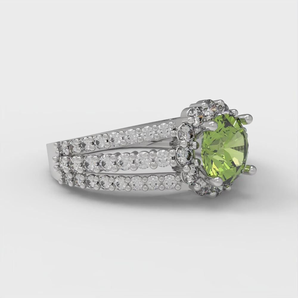 1.83 cttw Natural Peridot Hidden Halo Engagement Ring - Solid Gold (Round Cut,6.5mm)