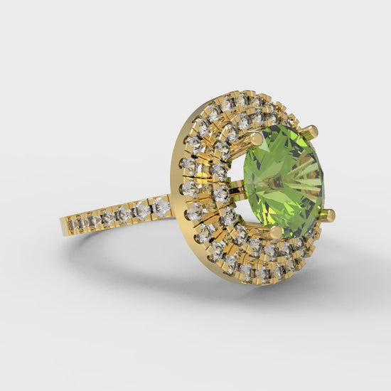2.6 cttw Natural Peridot Hidden Halo Engagement Ring - Solid Gold (Round Cut,8.0mm)