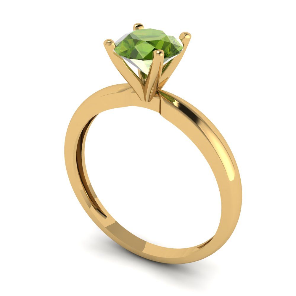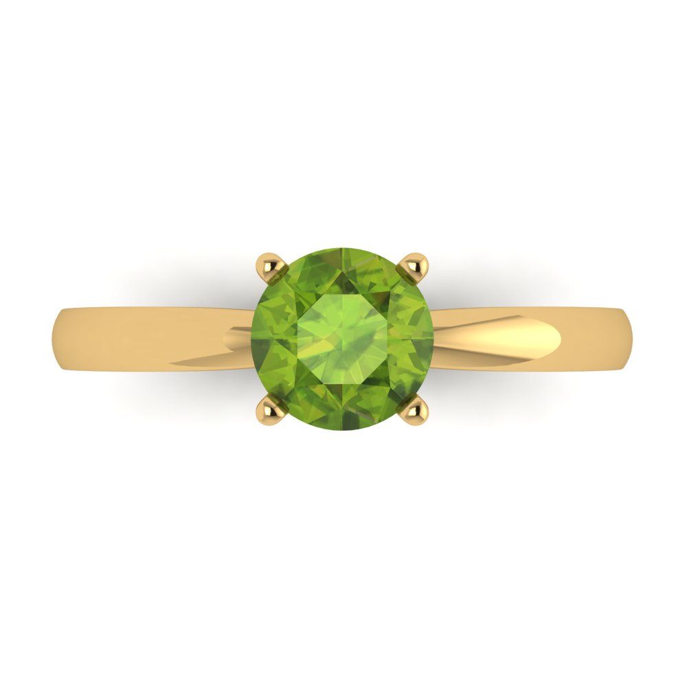 1 cttw Natural Peridot Solitaire Engagement Ring - Solid Gold (Round Cut,6.5mm)