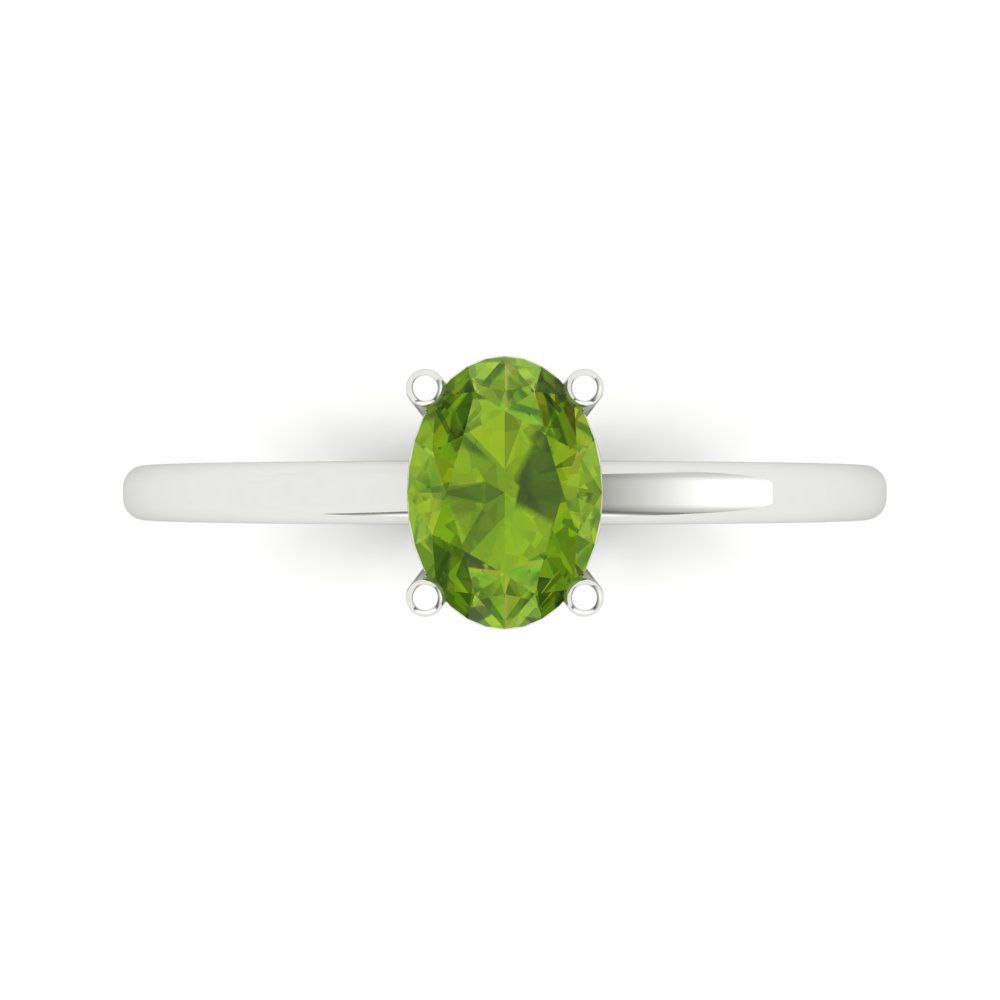 1 cttw Natural Peridot Solitaire Engagement Ring - Solid Gold (Oval Cut,7x5mm)