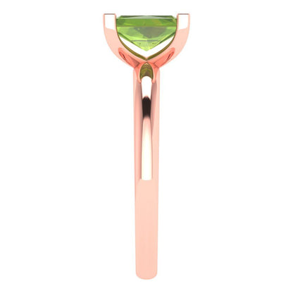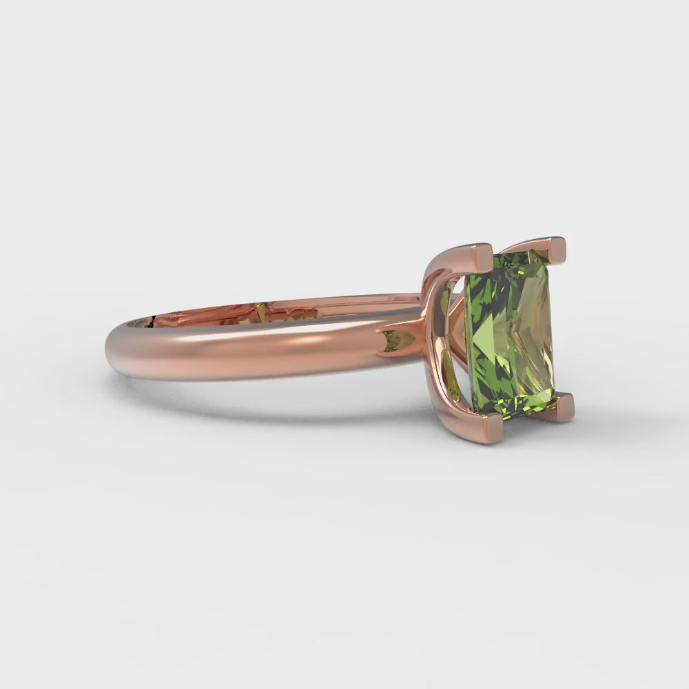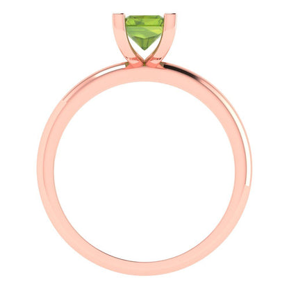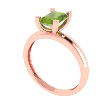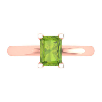 1 cttw Natural Peridot Solitaire Engagement Ring - Solid Gold (Emerald Cut,7X5mm)