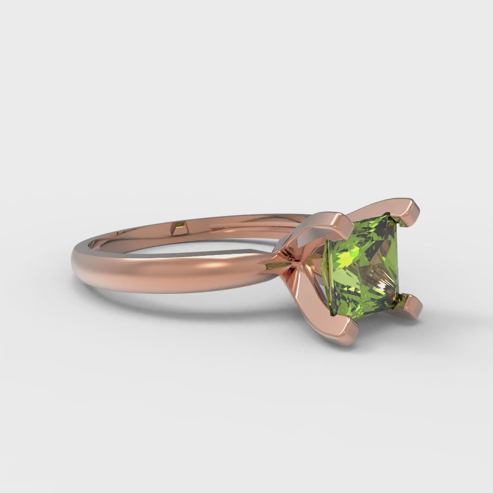 1 cttw Natural Peridot Solitaire Engagement Ring - Solid Gold (Princess Cut,5.5mm)