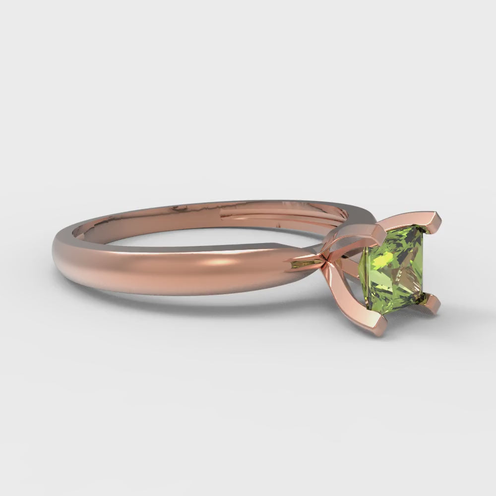 0.5 cttw Natural Peridot Solitaire Engagement Ring - Solid Gold (Princess Cut,4.5mm)