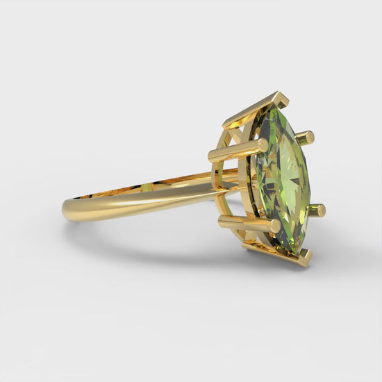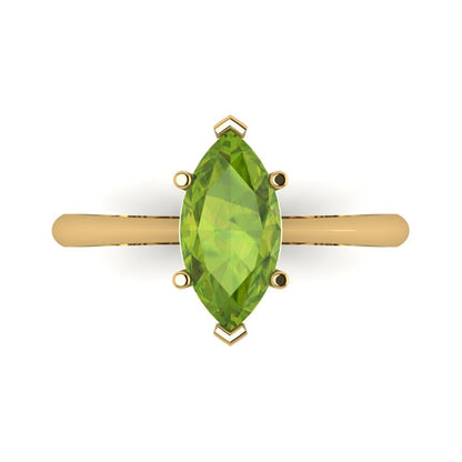 1.5 cttw Natural Peridot Solitaire Engagement Ring - Solid Gold (Marquise Cut ,11x5.5mm)