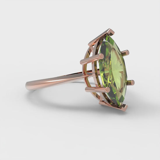 2.5 cttw Natural Peridot Solitaire Engagement Ring - Solid Gold (Marquise Cut ,13x6.5mm)