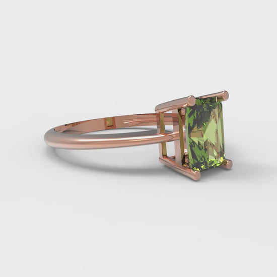 1 cttw Natural Peridot Solitaire Engagement Ring - Solid Gold (Radiant Cut,7x5mm)