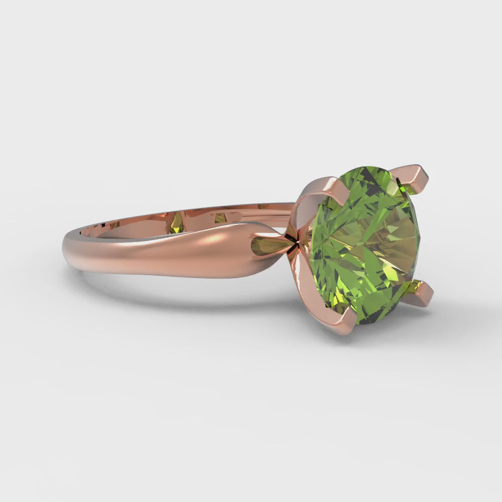2.5 cttw Natural Peridot Solitaire Engagement Ring - Solid Rose Gold (VVS1, Round Cut,8.5mm)