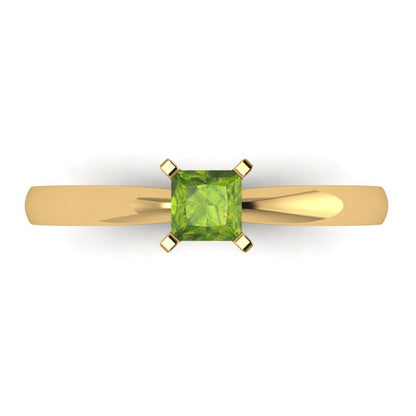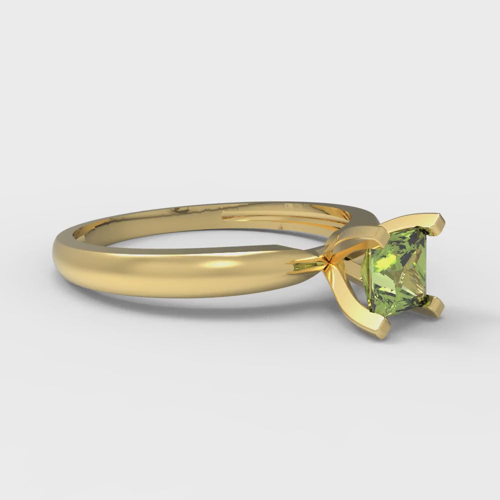 0.5 cttw Natural Peridot Solitaire Engagement Ring - Solid Gold (Princess Cut,4mm)