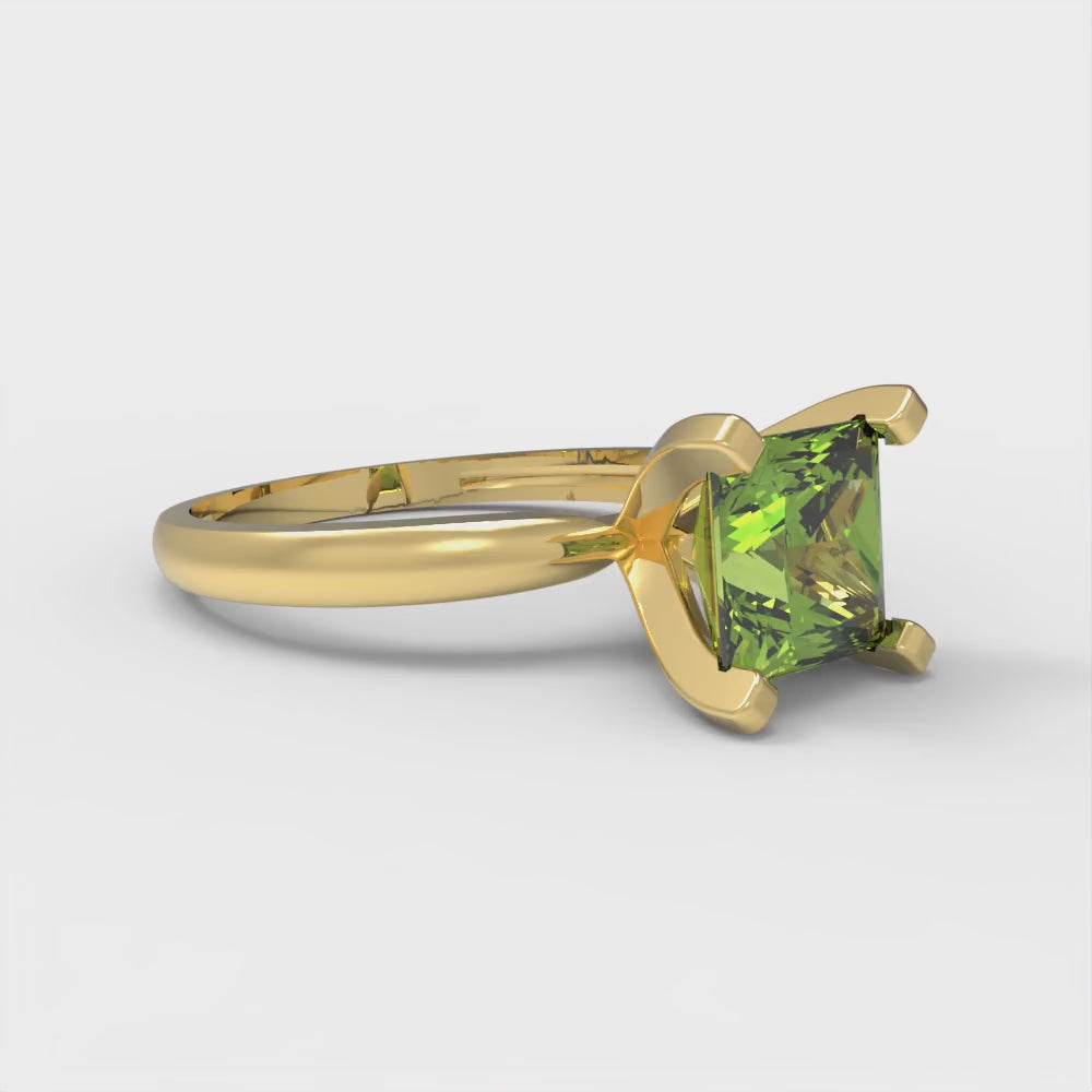 1.5 cttw Natural Peridot Solitaire Engagement Ring - Solid Gold (Princess Cut,6.5mm)