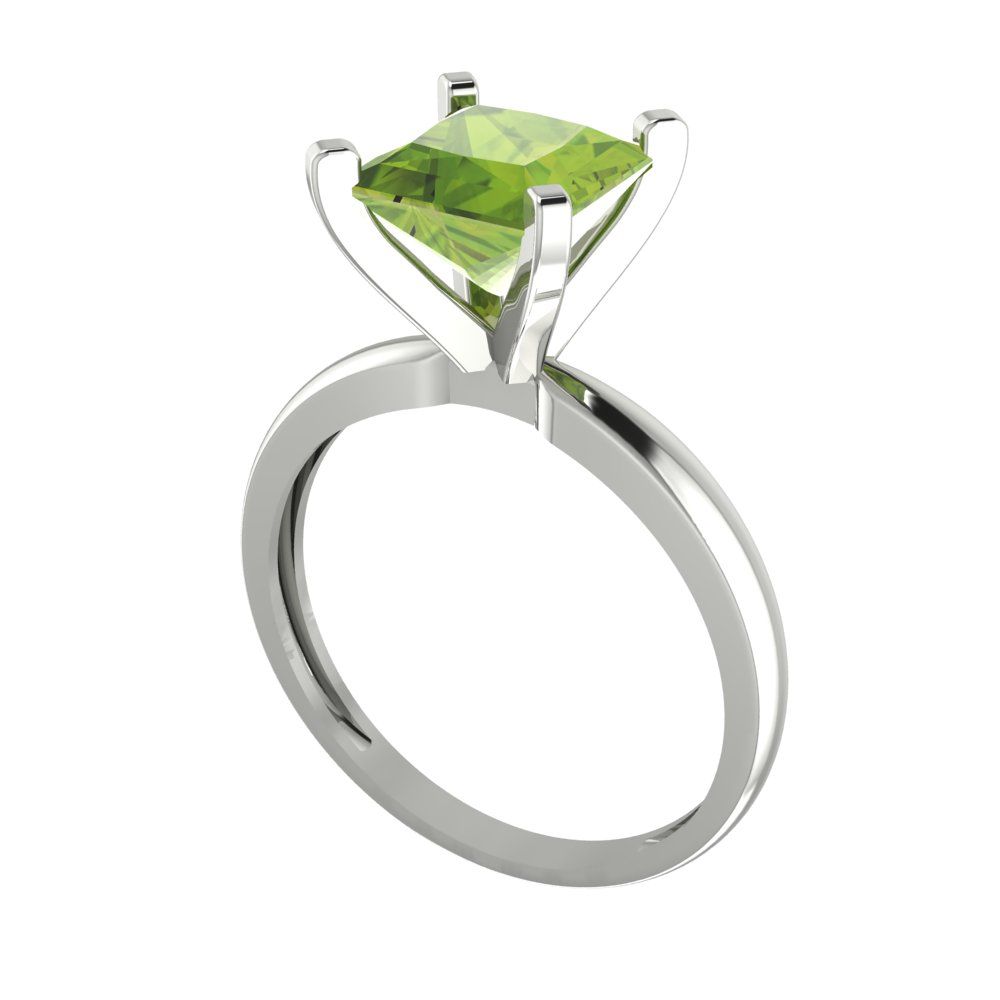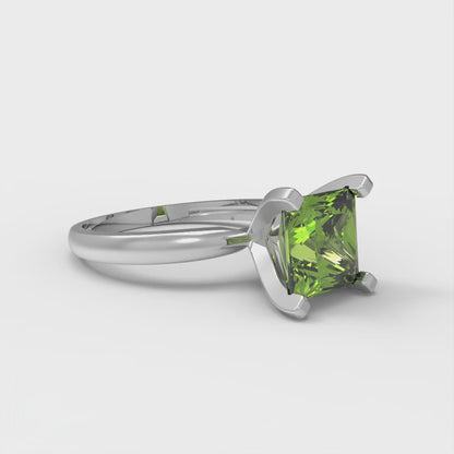 2 cttw Natural Peridot Solitaire Engagement Ring - Solid Gold (Princess Cut,7.0mm)