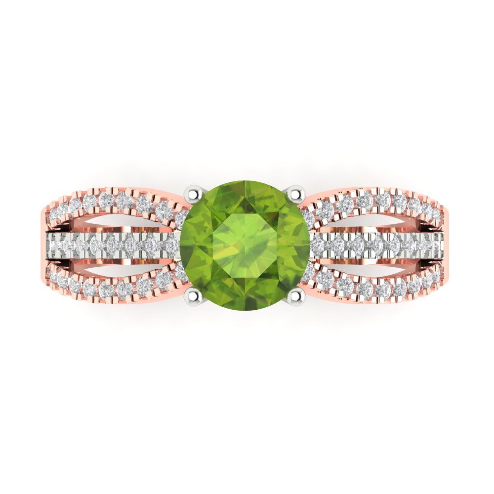 1.27 cttw Natural Peridot Solitaire with Zirconia Simulated Diamond Accents Engagement Ring - Solid Gold (Round Cut,6.5mm)