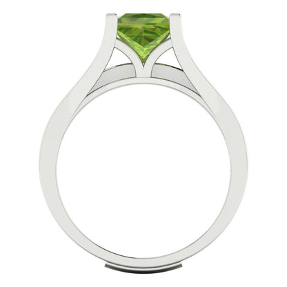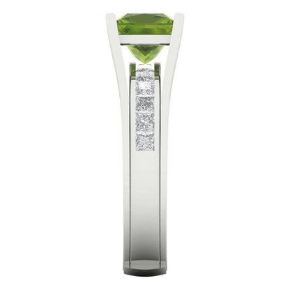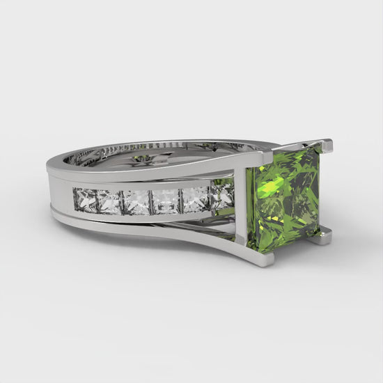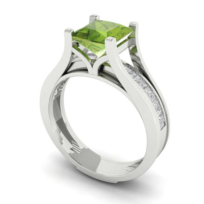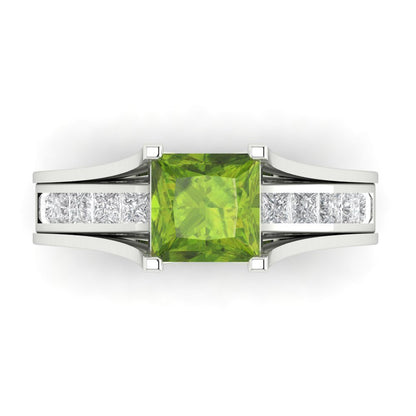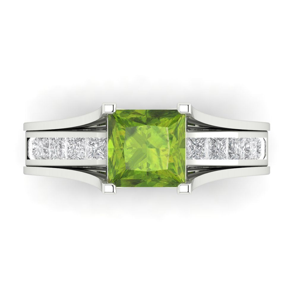 2.28 cttw Princess Cut Natural Peridot Bridal Set - Solid White Gold Engagement Ring & Wedding Band