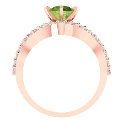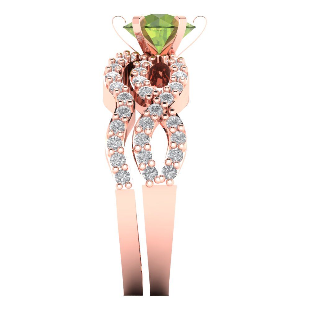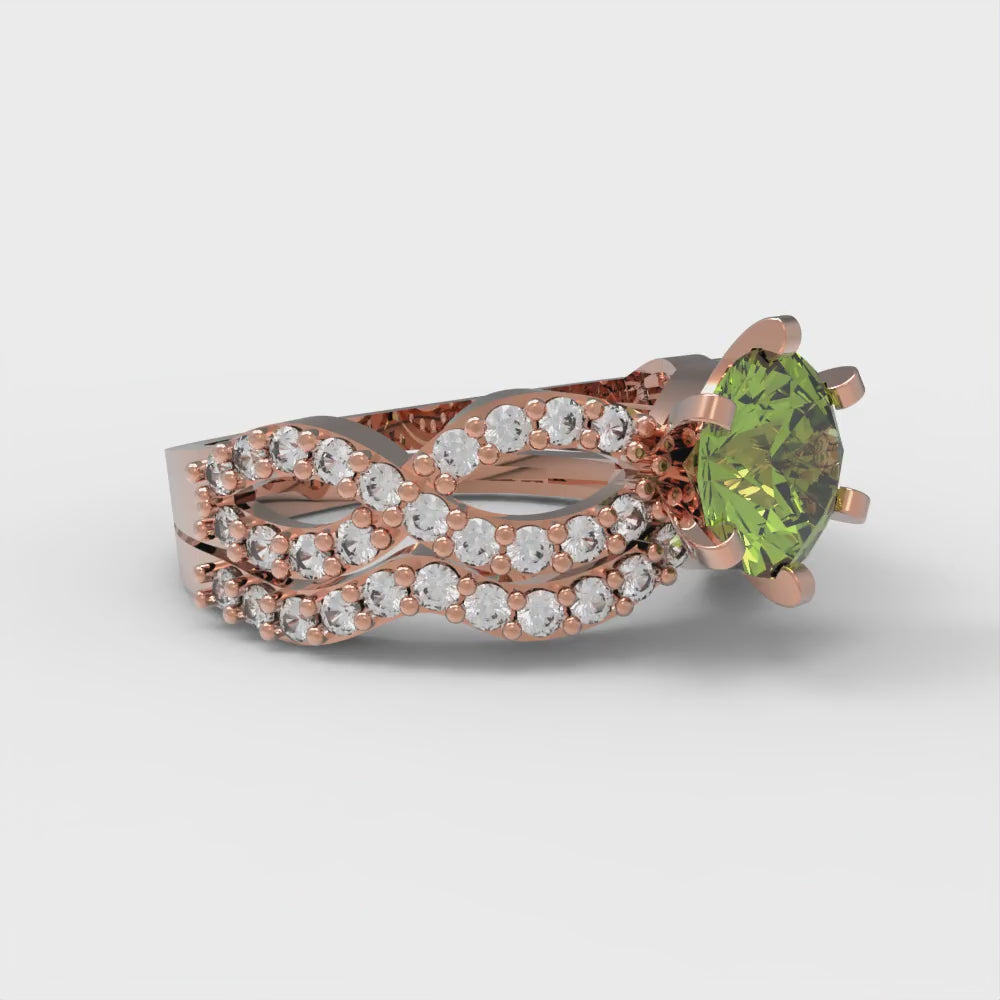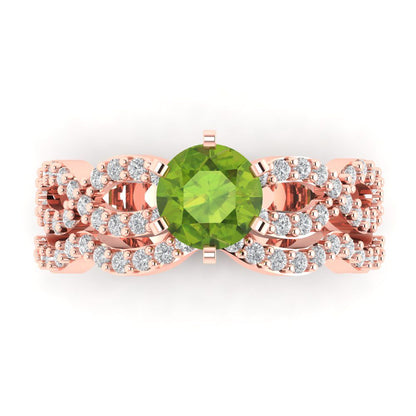 1.57 cttw Round Cut Natural Peridot Bridal Set - Solid Rose Gold Engagement Ring & Wedding Band