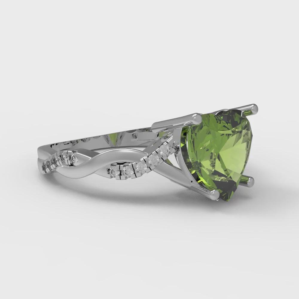 2.1 cttw Natural Peridot Solitaire with Zirconia Simulated Diamond Accents Engagement Ring - Solid Gold (Heart Cut,8mm)