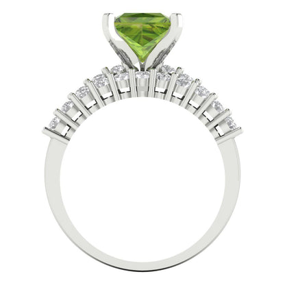 2.63 cttw Princess Cut Natural Peridot Bridal Set - Solid White Gold Engagement Ring & Wedding Band