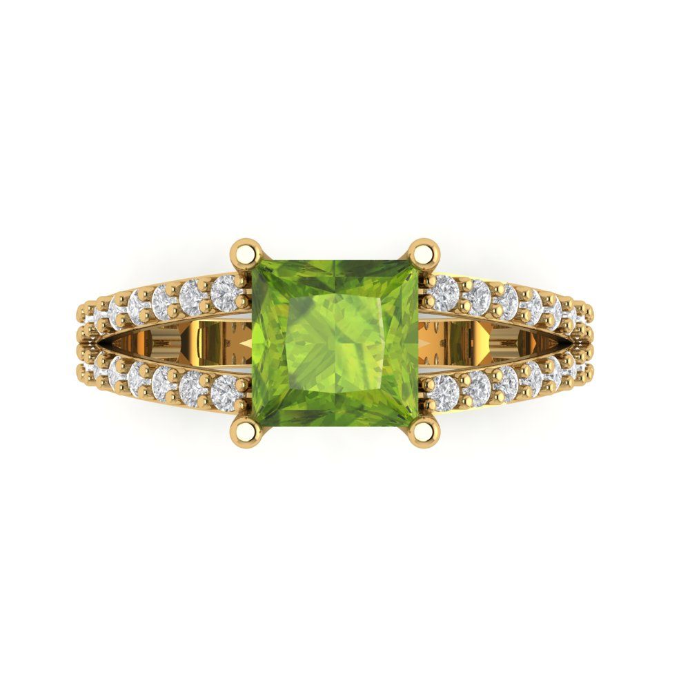 2.48 cttw Natural Peridot Solitaire with Zirconia Simulated Diamond Accents Engagement Ring - Solid Gold (Princess Cut,7.0mm)