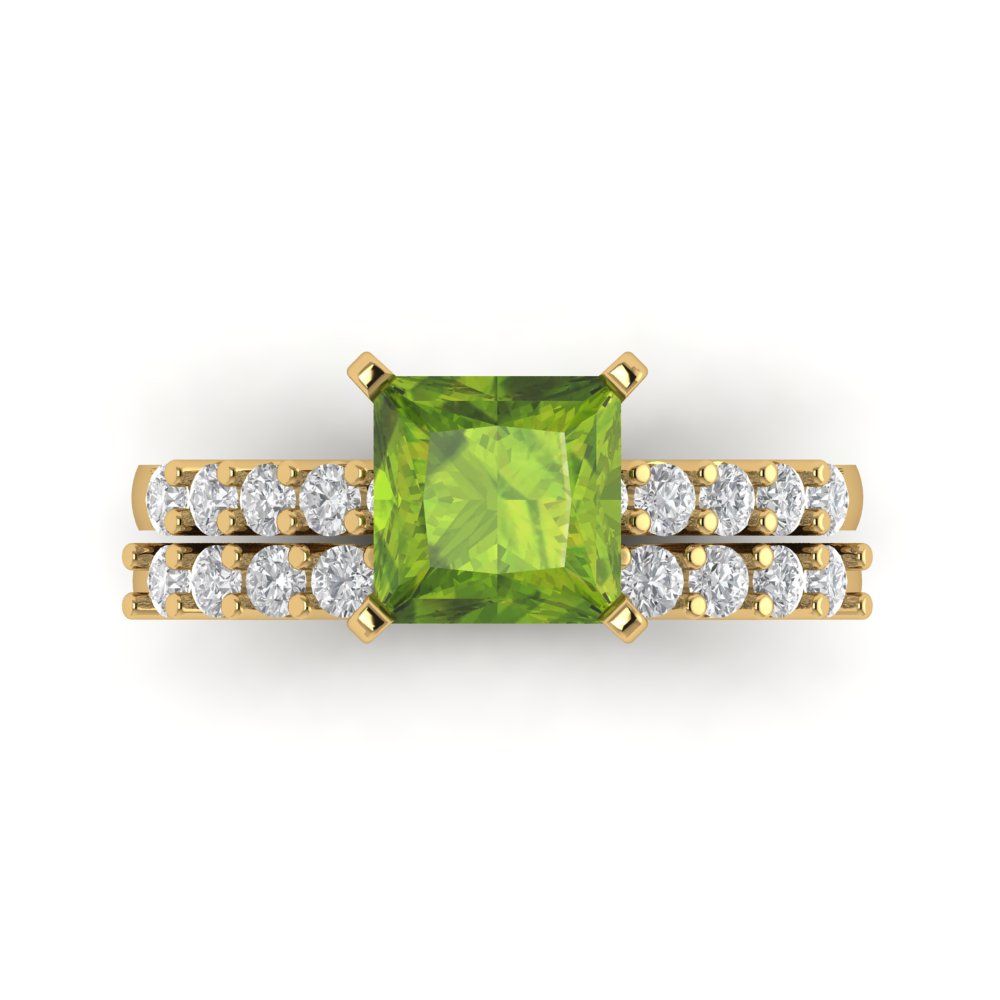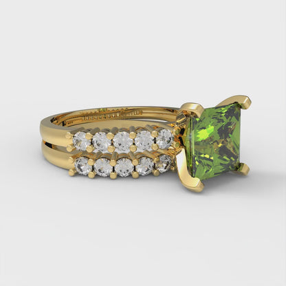 2.63 cttw Princess Cut Natural Peridot Bridal Set - Solid Yellow Gold Engagement Ring & Wedding Band