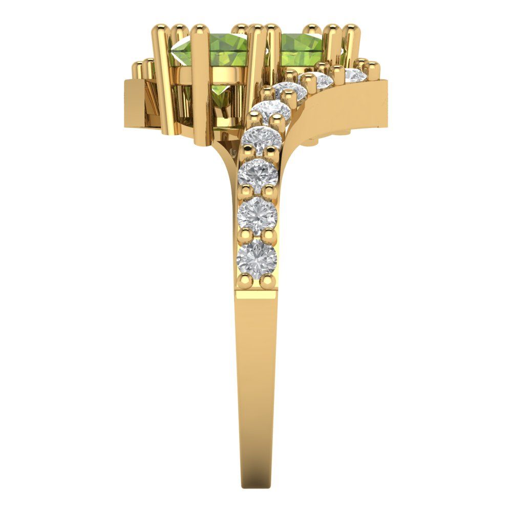 1.48 cttw Natural Peridot Solitaire with Zirconia Simulated Diamond Accents Engagement Ring - Solid Gold (Round Cut,5mm)