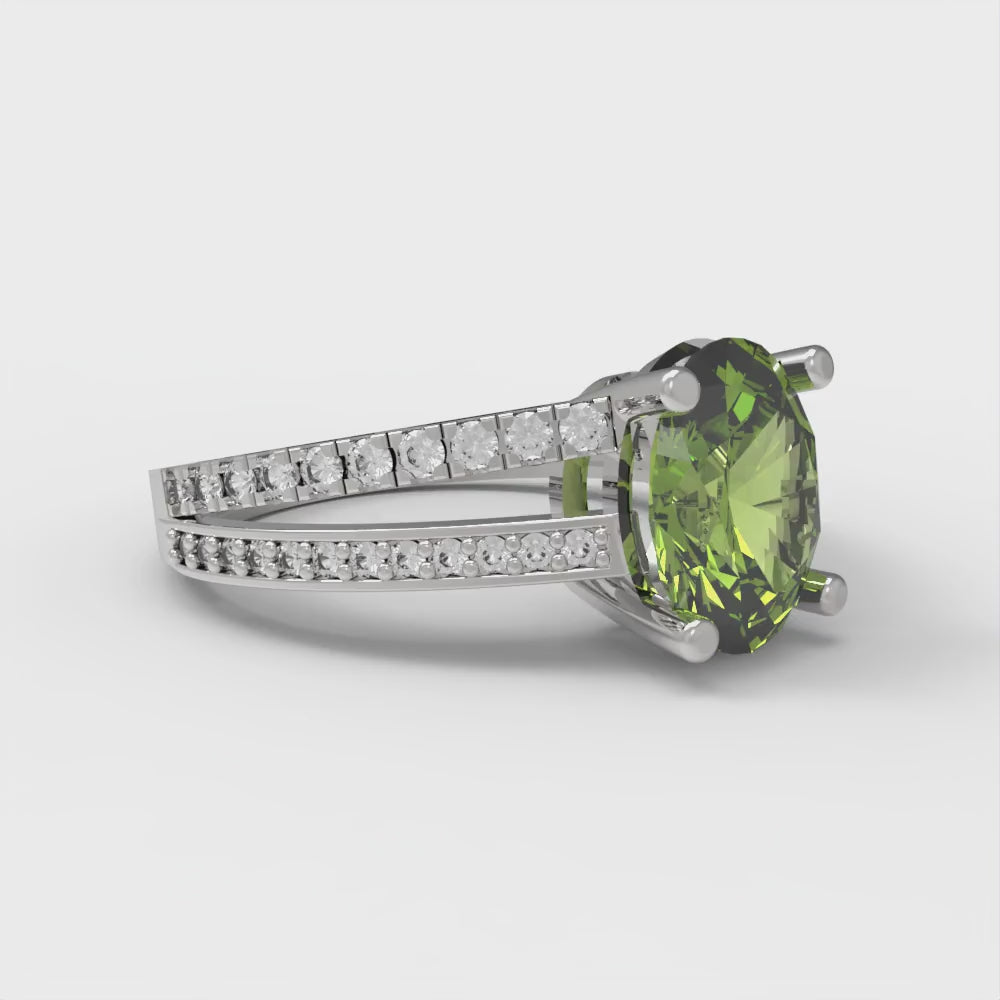 2.32 cttw Natural Peridot Solitaire with Zirconia Simulated Diamond Accents Engagement Ring - Solid Gold (Oval Cut,9X7mm)