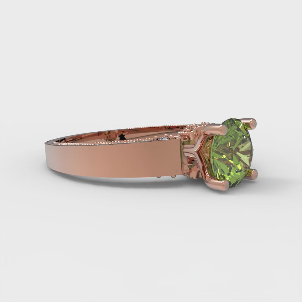 1.06 cttw Natural Peridot Solitaire with Zirconia Simulated Diamond Accents Engagement Ring - Solid Gold (Round Cut,6.5mm)