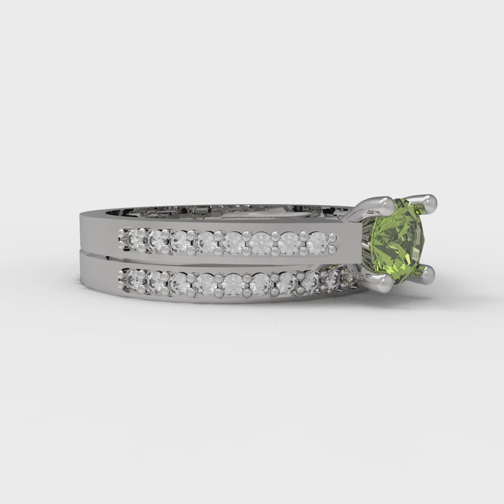 0.86 cttw Round Cut Natural Peridot Bridal Set - Solid White Gold Engagement Ring & Wedding Band