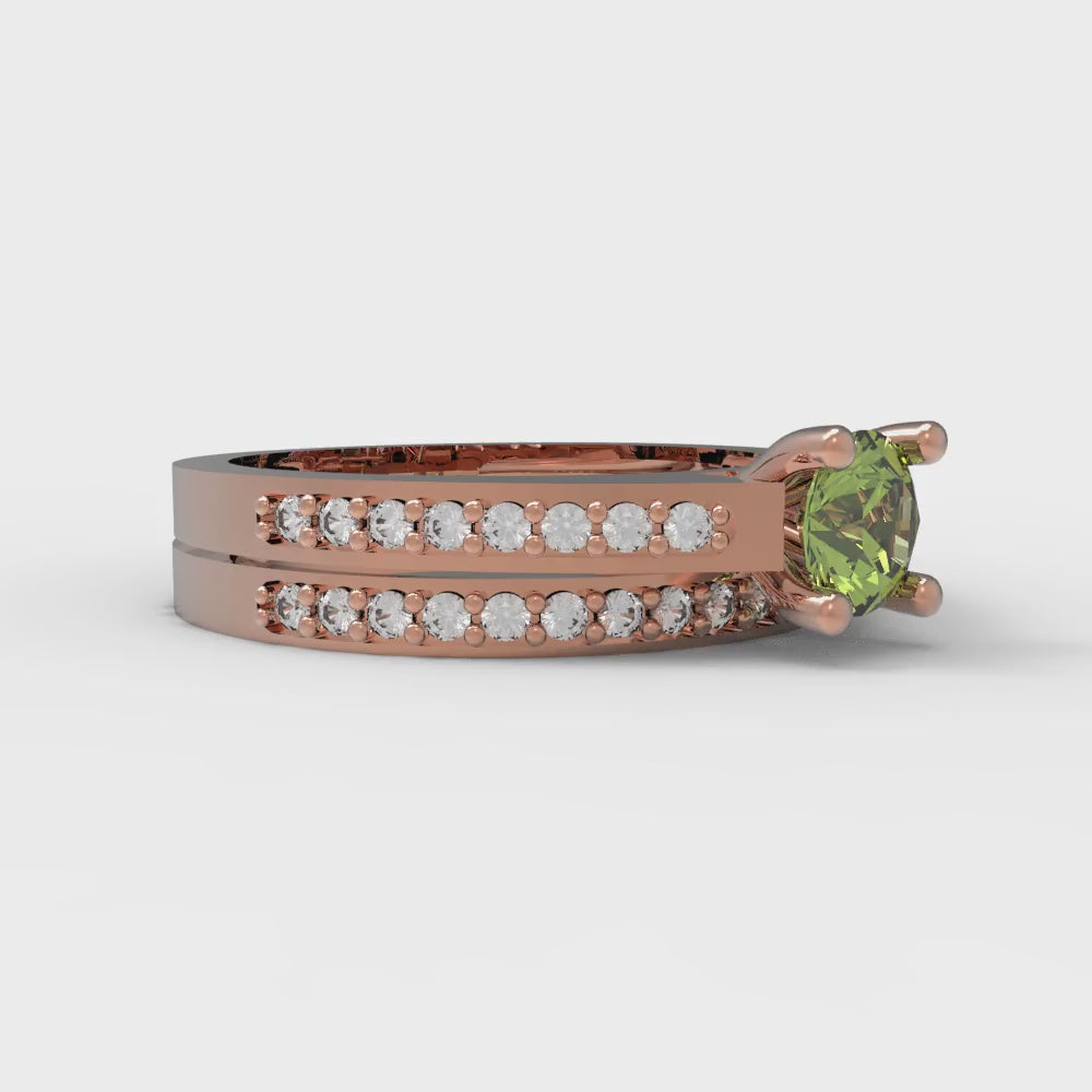 0.86 cttw Round Cut Natural Peridot Bridal Set - Solid Rose Gold Engagement Ring & Wedding Band