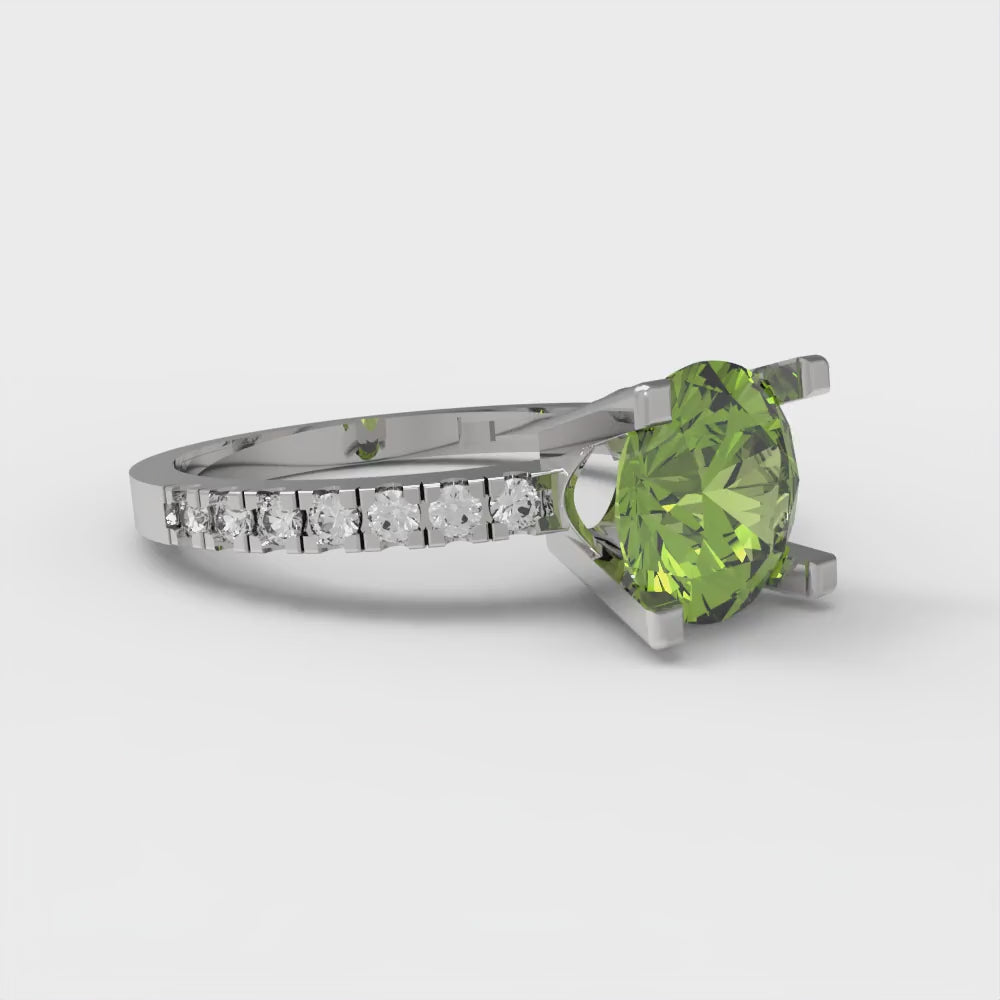 1.71 cttw Natural Peridot Solitaire with Zirconia Simulated Diamond Accents Engagement Ring - Solid Gold (Round Cut,7.5mm)